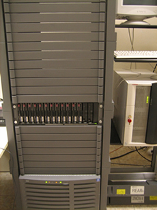 Aquí tenemos dos servidores Compaq con dos procesadores Xeon a 700MHz cada uno. El primero cuenta con 4GB de memoria RAM y 3TB de espacio de almacenamiento. El otro tiene 512MB de RAM y 25GB de disco duro. El servidor principal tiene 16GB de RAM y 3.2TB de espacio en disco.